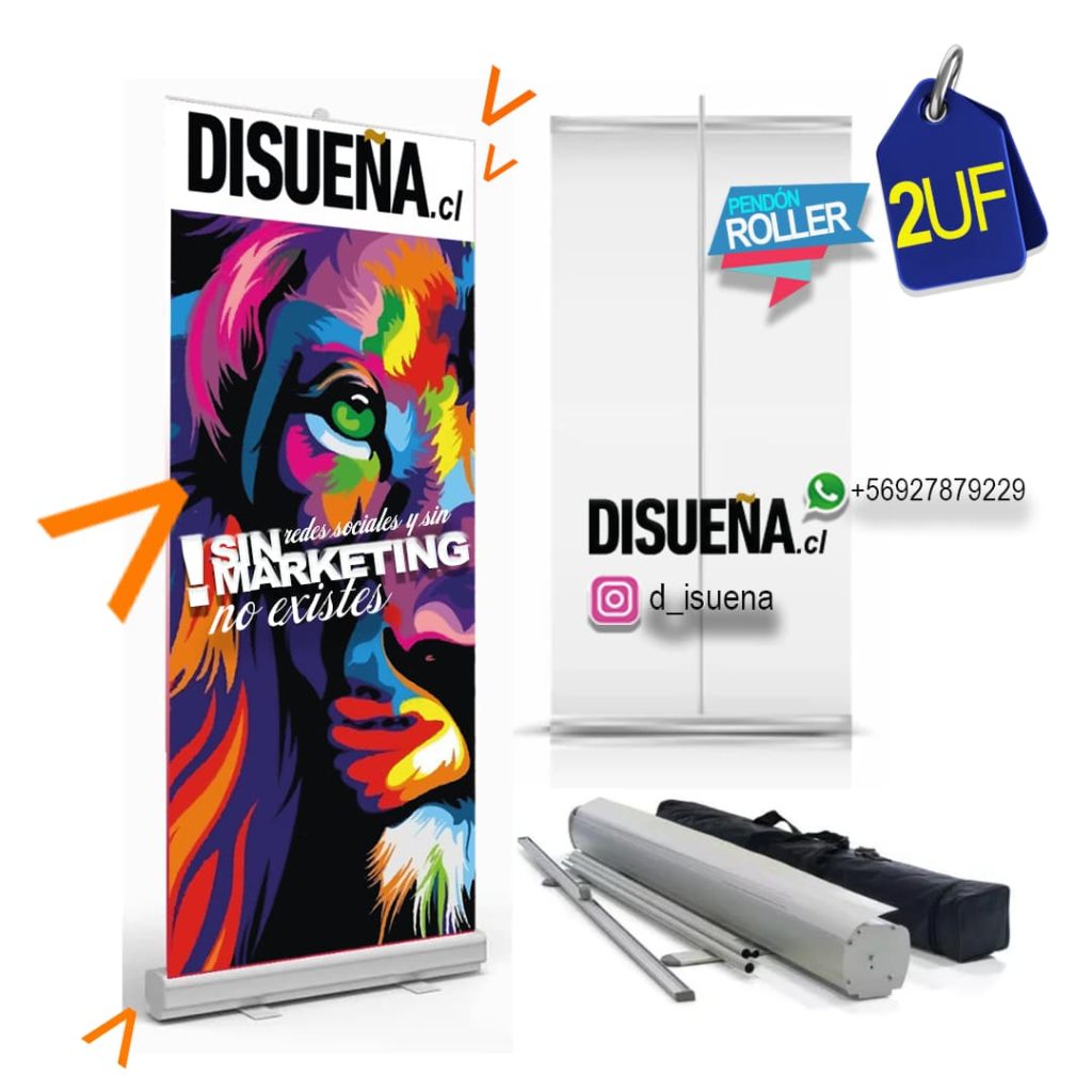 Destaca y marca presencia con un resistente y elegante pendón roller de 2 mts. x 80 cms. Incluye varilla, bolso y diseño.